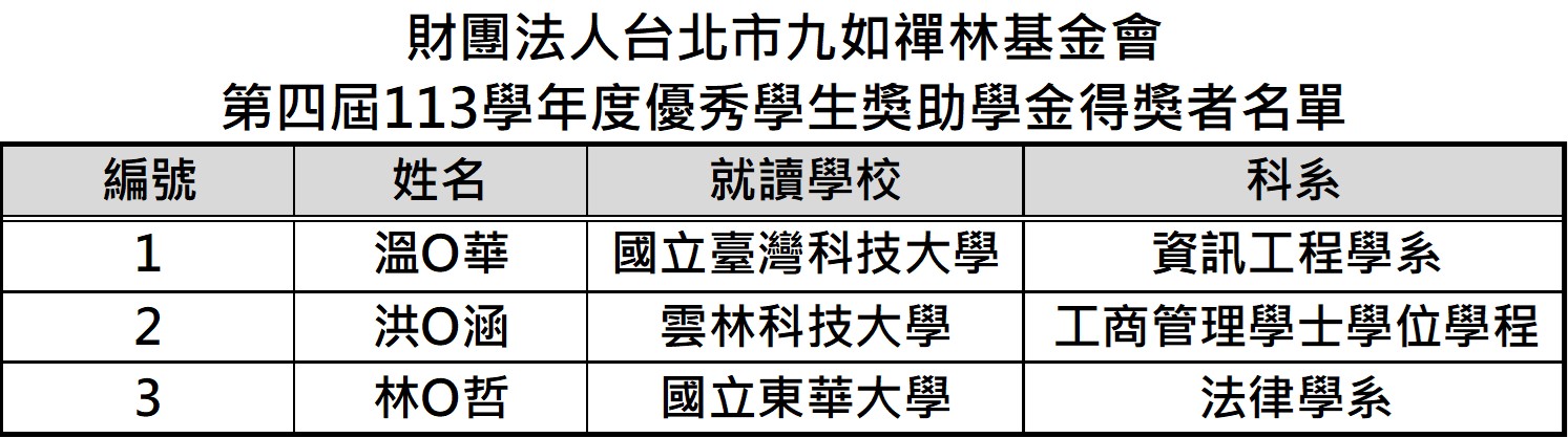 第四屆113學年度優秀學生獎助學金【得獎名單】