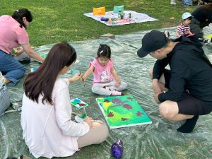 在春日微風與陽光下,《讓愛飛揚,藝術點燃生活》大地之畫活動溫馨展開,小朋友和家長們一起沉浸在創作的樂趣中,現場充滿歡笑與專注的身影。